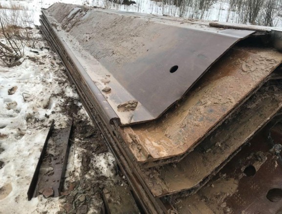 Шпунтовое ограждение котлована из шпунта Ларсена с распорами, выполненное специалистами «АрктикГидроСтрой»