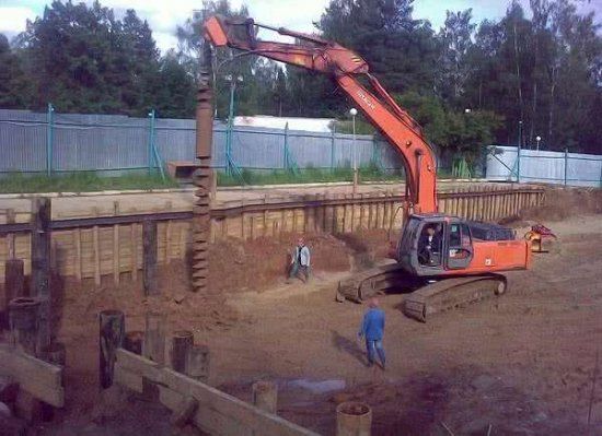 Если для бурения привлекается тяжелая гусеничная спецтехника, дополнительно может выполняться обустройство проездных путей на стройплощадке – для этого почву покрывают дорожными плитами, чтобы при перемещении в непосредственной близости от котлована МБУ не стала причиной обрушения стенок выработки.