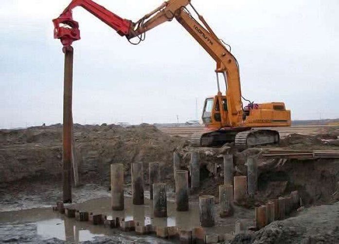 - вибропогружение с помощью специальных установок. Быстрый и эффективный метод, подходит для большинства грунтов. Имеет некоторые ограничения к применению в черте города из-за вибраций, которые могут повредить расположенным рядом постройкам;