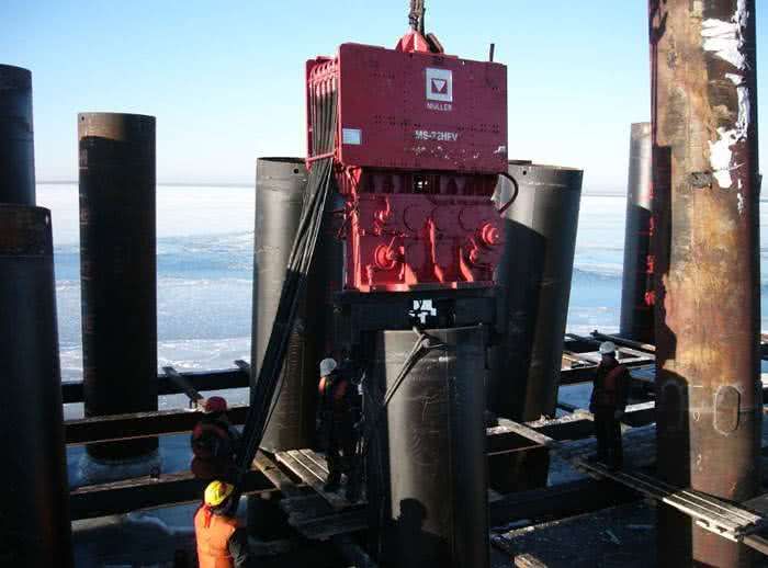 Строительство порта «Sабетта» на полуострове Ямал было выполнено с применением двух вибропогружателей: PTC 200HDRK и 120HD. Данное оборудование использовалось для установки комбинированной стены, состоящий из двойных свайных свай 14-28 м и 32 м-46 м. Эти оболочки диаметром 1450 мм и 1620 мм и толщина стенки 30 мм были монтироввны с помощью вибропреобразователей PTC, оснащенных 4 зажимами 150 т, закрепленных на промежуточной пластине. Пакеты PTC 1200C (806 кВт) и 900CO (571 кВт) были оснащены сибирским комплектом, способным работать при температуре -45 ° C