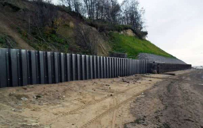 Для крутых склонов, речных и озерных откосов мы рекомендуем последний метод. Занимаемся этим много лет и хорошо знаем, что защита от оползней и обвалов с помощью шпунтовых ограждений – эффективный и в то же время экономичный метод: